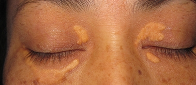 睑黄瘤是最常见的良性皮肤黄色瘤。多发生于眼睑皮肤的淡黄色柔软扁平疣状皮肤肿块,一般女性发病高于男性,且随年龄增长,发病率逐渐增高。目前,女性发病率约为1.1%,男性约0.3%。另外,约有50%的患者伴有血脂异常。