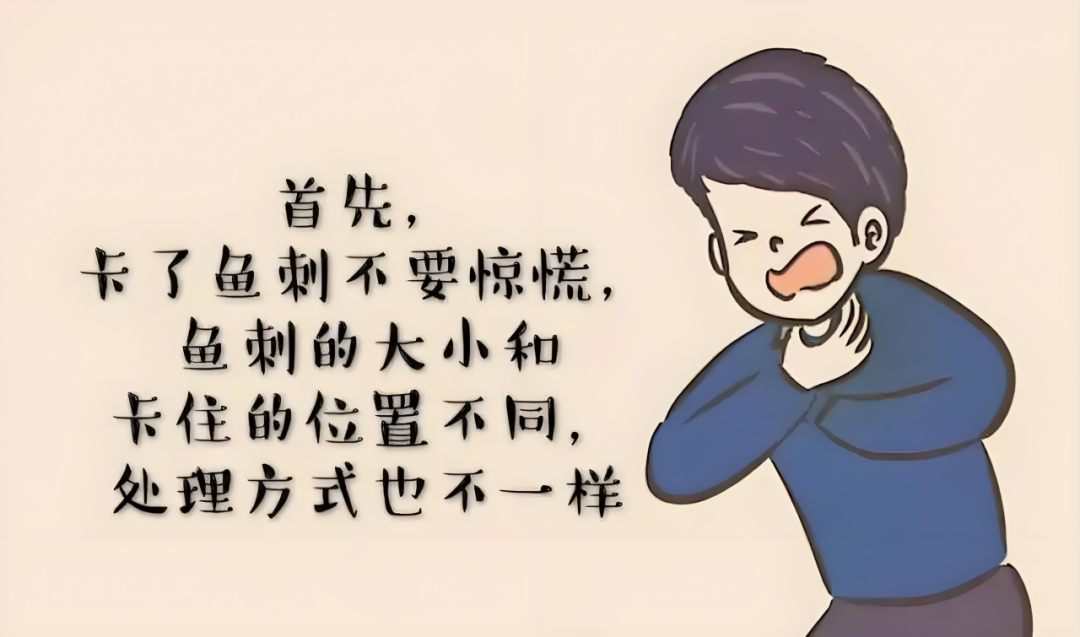 (1)冷静、淡定:一旦被鱼刺卡在,不要紧张,停止进食,减少吞咽动作,否则肌肉收缩,鱼刺会卡得更深、更紧。