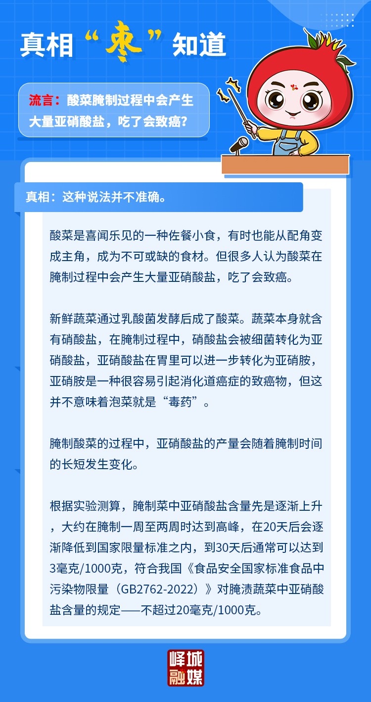 【真相“枣”知道】酸菜腌制过程中会产生大量亚硝酸盐,吃了会致癌?