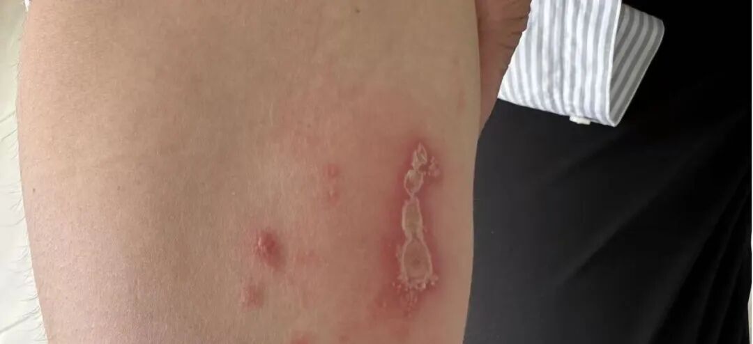 一 认准症状:皮肤出现“条状红肿水疱”要警惕