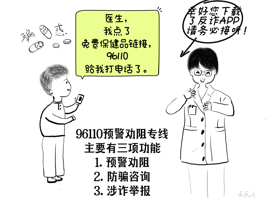 6.不犹豫:发现可疑情况或遭遇诈骗,立即拨打 110 报警,或联系医院保卫部门、反诈中心寻求帮助,不要犹豫拖延。