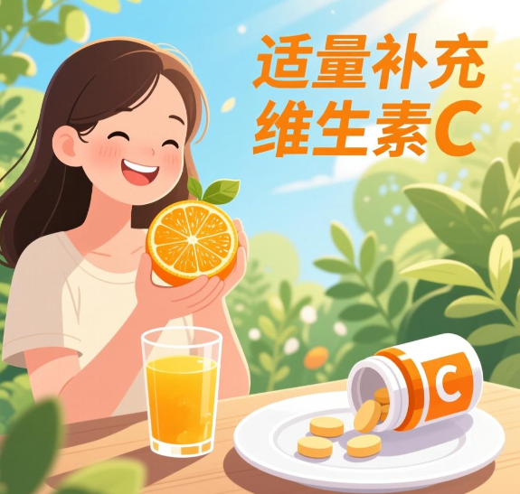 建议:优先通过蔬菜水果(如猕猴桃、草莓、彩椒)等食补的方式获取天然维生素C。
