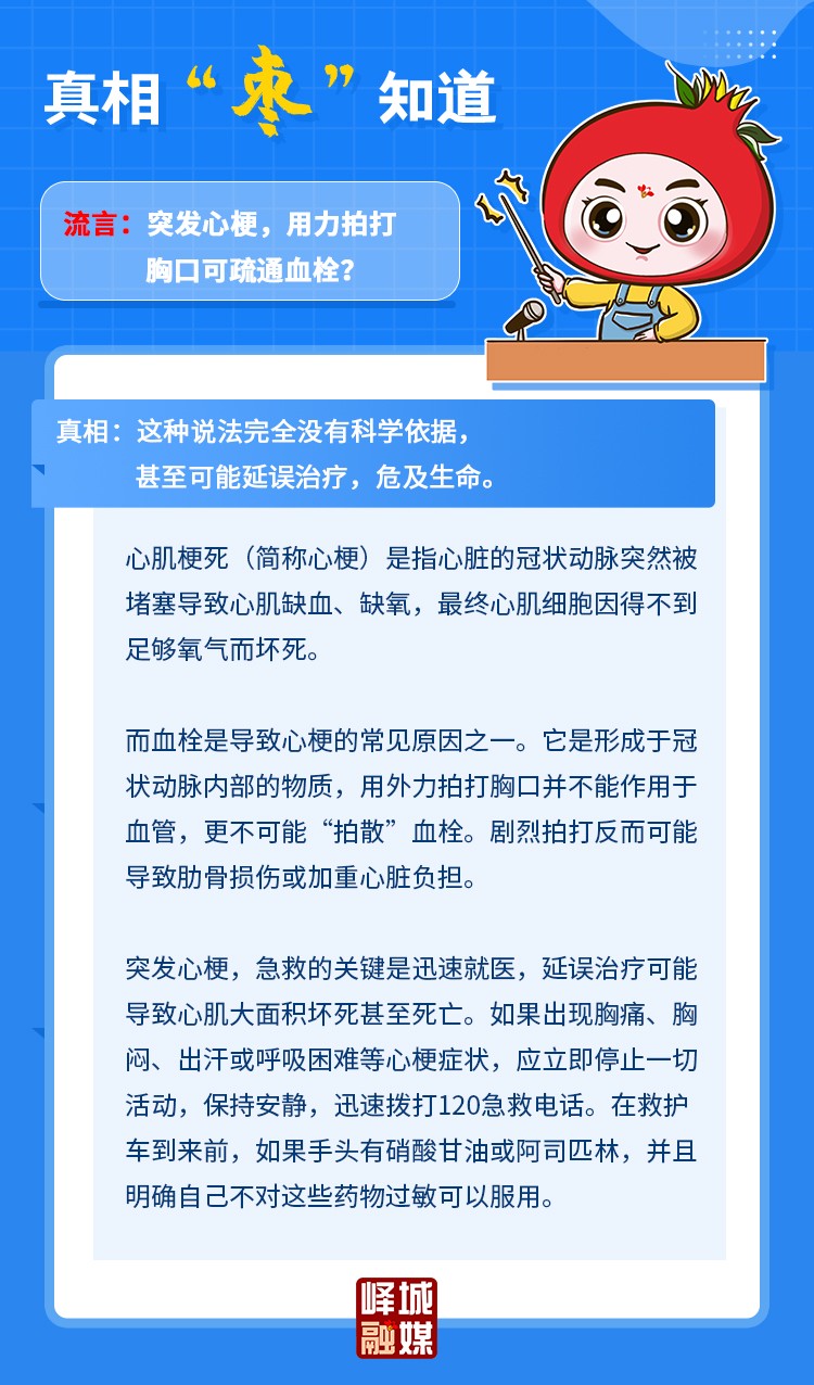 【真相“枣”知道】突发心梗,用力拍打胸口可疏通血栓?